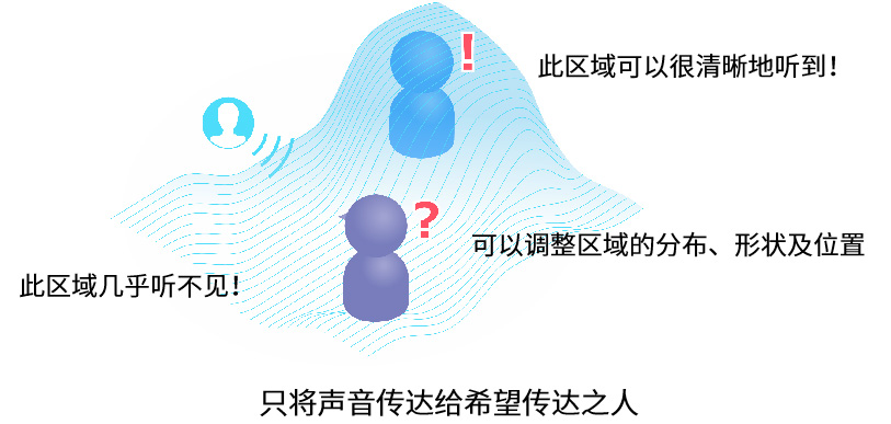 利用音場(chǎng)控制技術(shù),無(wú)需特殊硬件,使用三個(gè)揚聲器,利用空間聲壓分布可創(chuàng )建聲音輸出清晰的區域和難以聽(tīng)到的區域。