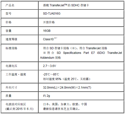 據日本東芝消息稱(chēng),東芝將于7月31日推出存儲容量為16GB注1的新型無(wú)線(xiàn)SDHC存儲卡,型號為SD-TJA016G。該存儲卡與常見(jiàn)的SDHC存儲卡不同的是,它搭載了能實(shí)現近距離無(wú)線(xiàn)傳輸的TransferJetTM技術(shù),讓人眼前一亮。據悉,該技術(shù)產(chǎn)品在行業(yè)屬于首款注2,將為消費者提供無(wú)以倫比的極速傳輸體驗。