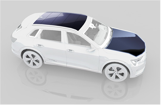 在車(chē)載安裝面積為3.33㎡,電動(dòng)汽車(chē)單位電量的可行駛距離(采用NEDO預測的2030年估算值)為12.5km/kWh的條件下,單日免充電續航里程約為35km。