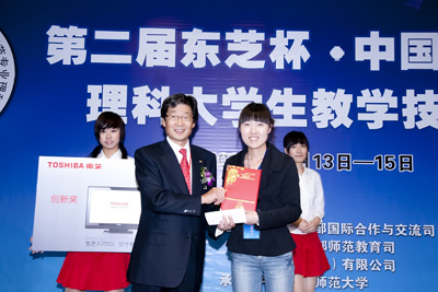 本次教學(xué)技能大賽分預賽和決賽兩個(gè)階段進(jìn)行,參賽學(xué)生首先在各自所在的院校通過(guò)預賽選出決賽選手。決賽內容包括教案評比、模擬授課、即席講演三個(gè)部分,由教育部及各院校專(zhuān)家組成評選委員會(huì )進(jìn)行專(zhuān)業(yè)評選。即席講演部分采用了現場(chǎng)抽題的方式,極大地考驗了參賽同學(xué)的臨場(chǎng)應變能力與思維邏輯能力。此外,數學(xué)、物理、化學(xué)三個(gè)專(zhuān)業(yè)共計9名獲獎大學(xué)生還將獲得東芝提供的獎品以及赴日本研修的機會(huì )。