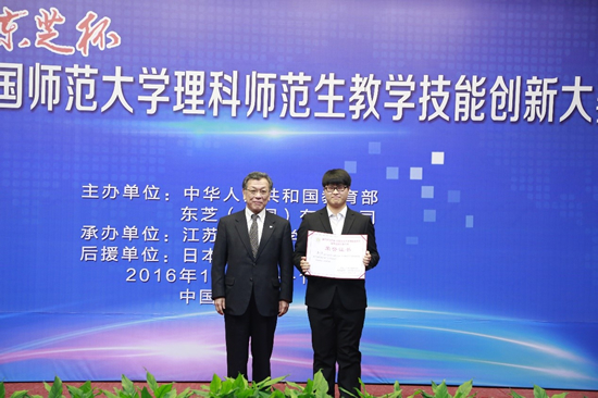 12日上午,在頒獎典上,東芝中國總代表豐原正恭先生表示:“東芝一直以來(lái)十分關(guān)注以人類(lèi)和社會(huì )發(fā)展為基礎的教育事業(yè),并將其打造成為東芝CSR管理體系的重要組成部分。因為教育是社會(huì )發(fā)展的原動(dòng)力,而教育工作者則是社會(huì )原動(dòng)力的引擎。中國師范大學(xué)理科師范生教學(xué)技能創(chuàng )新大賽已經(jīng)連續第八屆舉辦,一部分參賽者已經(jīng)投身到教育行業(yè)中,對中國教育創(chuàng )新體系產(chǎn)生了良好的影響,為此我感到十分高興。”