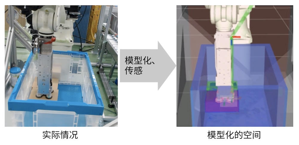 例如,要抓取箱子內的物品時(shí),人類(lèi)思考的是,想抓取的物品在哪里,大小及重量如何,為避免碰到箱子內側及其他物品又應該如何伸出自己的手臂。